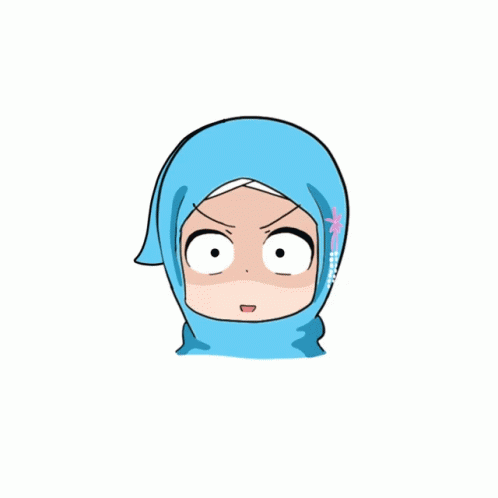 Lalaartwork's chibi character in a blue hijab with a shocked expression, perfect as a sticker or emoji.