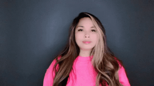 Lalaine Dawn in a bright pink sweater, making a playful face with her arms crossed.