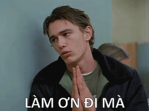 James Franco as Daniel Desario from Freaks and Geeks, pleading with the Vietnamese caption 'Làm ơn đi mà'.