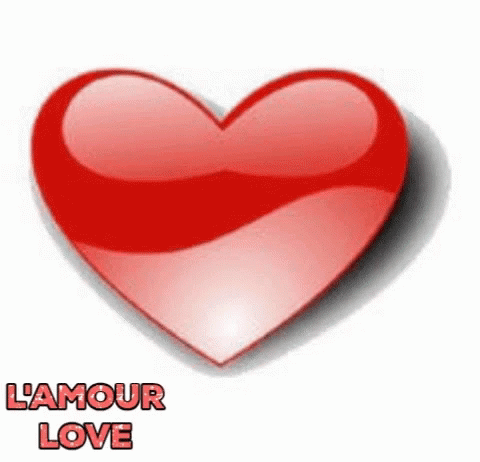 A vibrant red heart graphic featuring the words 'L'AMOUR LOVE' in stylish pink text.