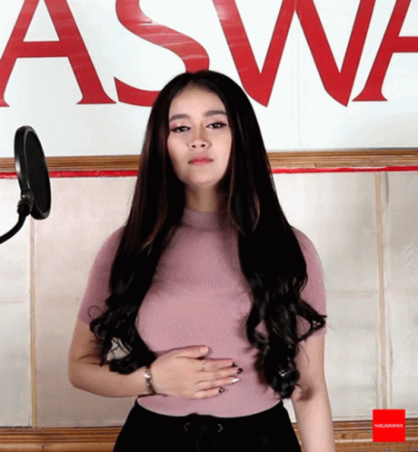 A woman, likely Sella Selly2Tik Tok, stands in front of a microphone with the 'Nagaswara' logo in the background.