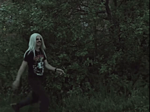 Lapenko, in character with long white hair and sunglasses, greets someone with '-Oh! Hello, damn!'