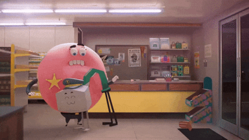 Larry from The Amazing World of Gumball strikes a zesty pose in a store.