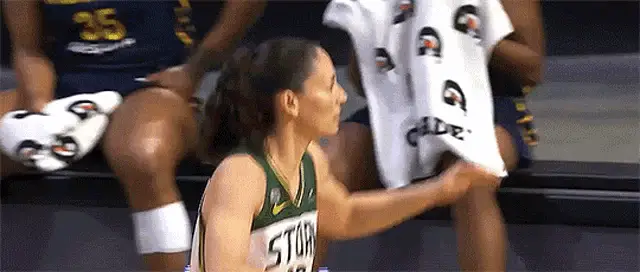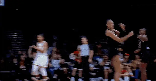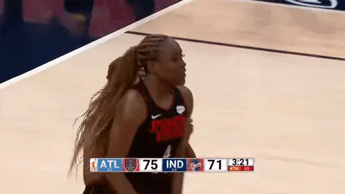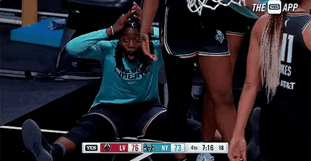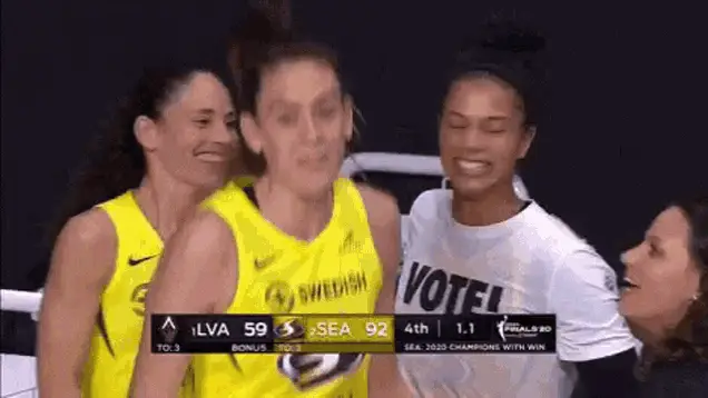 Las Vegas Aces players Chelsea Gray and Kelsey Plum share a moment of celebration and camaraderie during a WNBA game.
