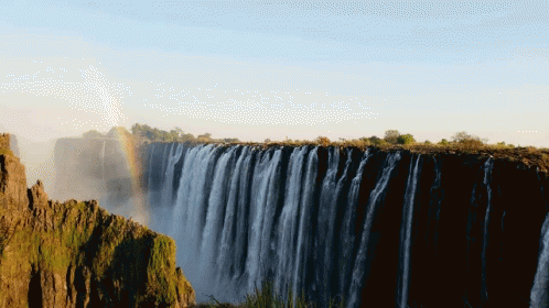 Majestic Victoria Falls, also known as Mosi Oa Tunya, with a vibrant rainbow arching over the mist.