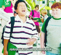 Hudson Yang from Fresh Off The Boat laughs heartily in a school setting, with another boy nearby.