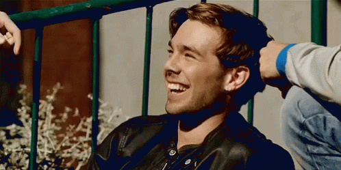 Merli, wearing a black leather jacket, laughs heartily while sitting outdoors, possibly with Pol Rubio.
