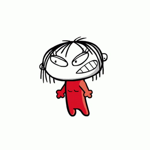 An adorable cartoon girl with a red body and black hair displays a range of funny and silly expressions, from giggling to surprise.