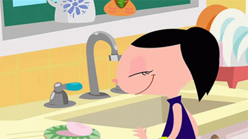 Luna from Earth To Luna washes her hands with soap under a running tap in the kitchen sink, promoting hygiene.