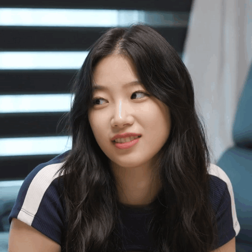Le Sserafim Kazuha making a cute frowning face with a slight white line on her nose.