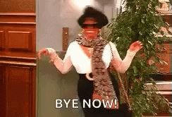 Regine Hunter (Kim Fields) waves goodbye while walking into an elevator, saying 'Bye Now!'