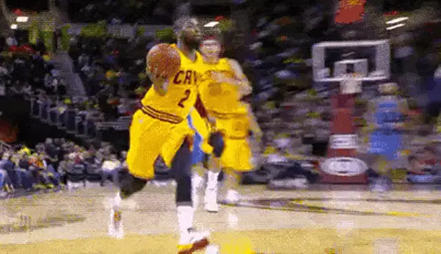 LeBron James falls to the court during a basketball game, a moment often called a 'flop'.
