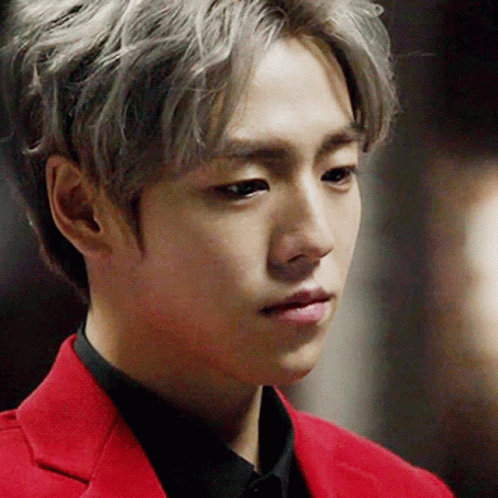 Lee Hyun Woo, a young man with grey hair, looks intently at the camera before a subtle smile.