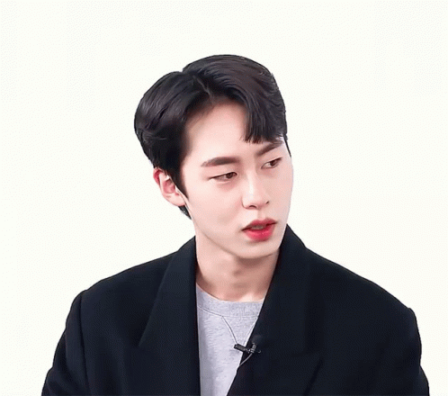 Actor Lee Jae-wook looking shy and cute, wearing a black jacket and grey sweater.