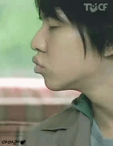 Lee Seung Gi makes a cute kissy face with his eyes closed in a close-up shot.