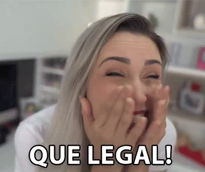 Jana Taffarel reacts with excitement, exclaiming 'Que Legal!' and making an 'OK' gesture with both hands.