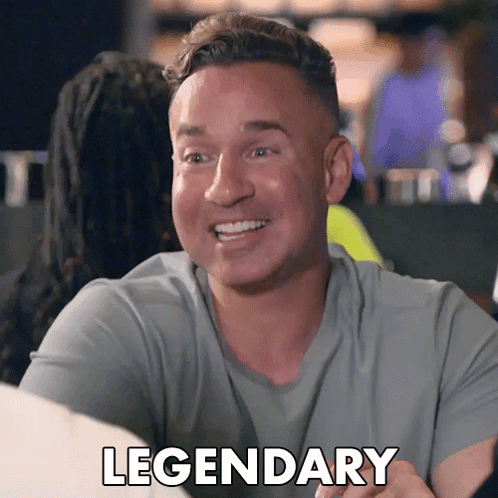 Mike "The Situation" Sorrentino from Jersey Shore smiles, with the word "LEGENDARY" displayed on screen.