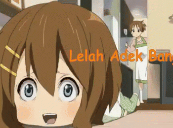 Yui Hirasawa from K-On! looking tired and confused, with the Indonesian caption 'Lelah Adek Bang' on screen.