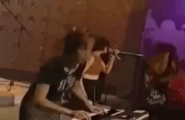 Lele Giaccari sits on a park bench, smiling while eating a handful of grass from the ground.