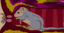 Lemmi Lemmiwink, a small rodent-like creature, is seen eating something green while sitting in a tunnel.