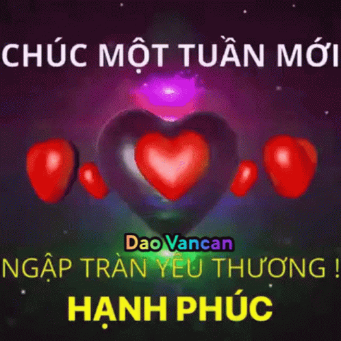 Red hearts floating with 'Happy New Week' wishes, full of love and happiness from Lênhân.