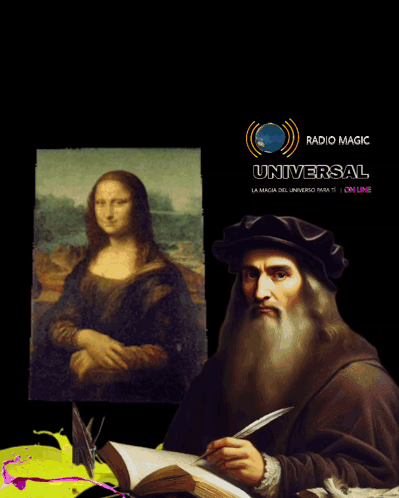 Leonardo da Vinci and Mona Lisa featured with a 'Happy Monday' message celebrating art from Radio Magic Universal.