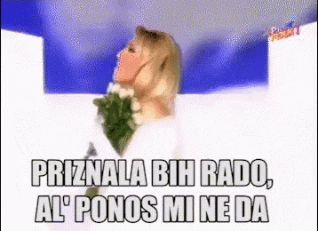Lepa Brena sings 'Priznala bih rado, al' ponos mi ne da' while holding a bouquet of white flowers.