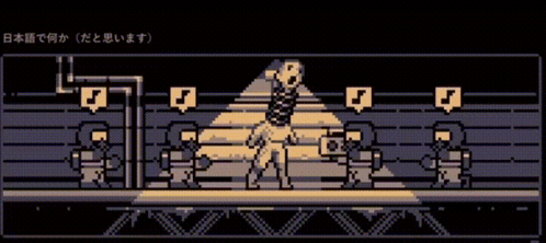 Pixel art characters from Lethal Company, including a Coilhead, perform the 'All My Fellas' dance.