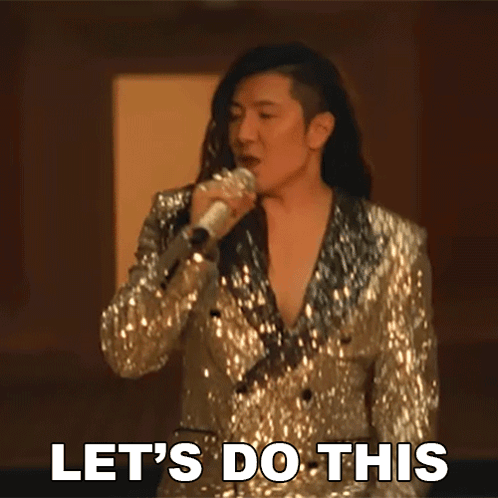 Guy Tang performs 'Let's Do This' on stage, wearing a dazzling sequined suit and holding a microphone.