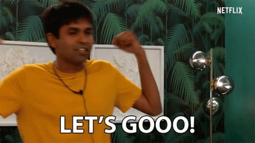 Shubham Goel from Netflix's The Circle excitedly exclaims "Let's Gooo!" with arms raised.
