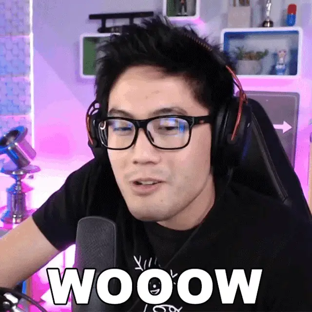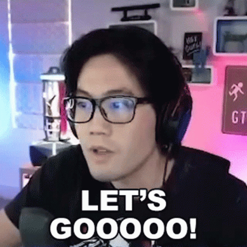 Ryan Higa enthusiastically exclaims 'Let's Gooooo!' with a funny expression, wearing glasses and headphones.