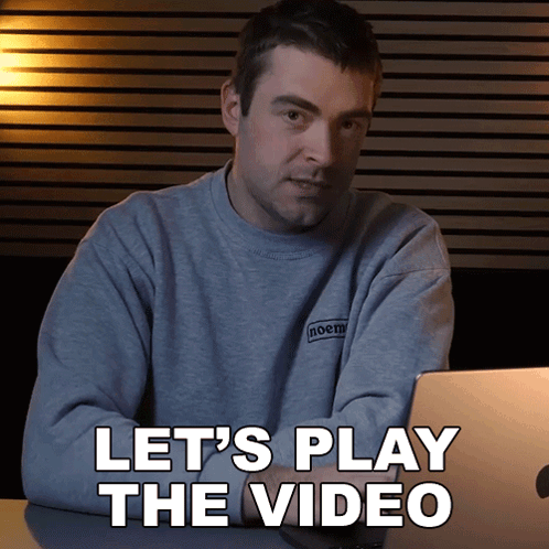 Lewis Jackson sits at a desk with a laptop, displaying the text 'LET'S PLAY THE VIDEO'.