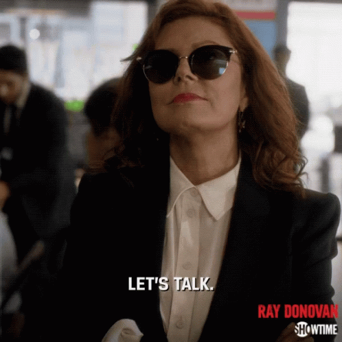 Susan Sarandon, wearing sunglasses, says 'Let's Talk' in a promotional clip for Ray Donovan on Showtime.