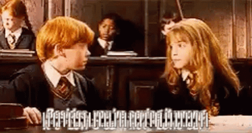 Hermione Granger corrects Ron Weasley on the pronunciation of the Wingardium Leviosa spell in a classic Harry Potter scene.