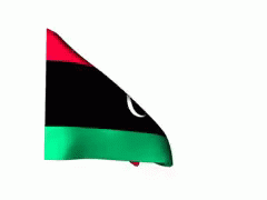 The national flag of Libya, featuring red, black, and green stripes with a white crescent moon and star, waving gently.
