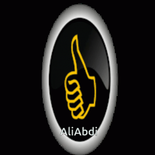 A black button with a yellow thumbs-up icon and 'AliAbdi' text, transitioning from oval to circular shape.