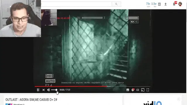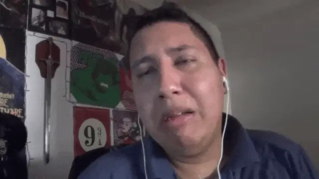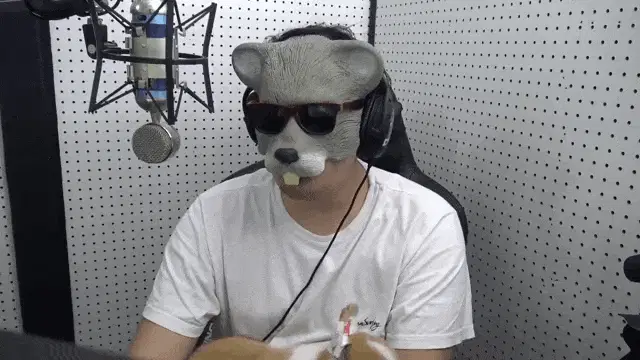 Person in glasses and hat touches ear near mic, reacting to sounds and saying 'I can't hear you'.