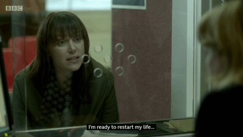 a woman says i 'm ready to restart my life on a screen