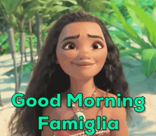 Moana from Disney's Moana wishes "Good Morning Famiglia" in a message from Lioncubfam Kristyna.