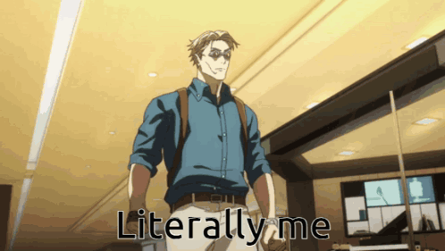 Nanami Kento from Jujutsu Kaisen embodying the 'Literally me' meme, walking with confidence.