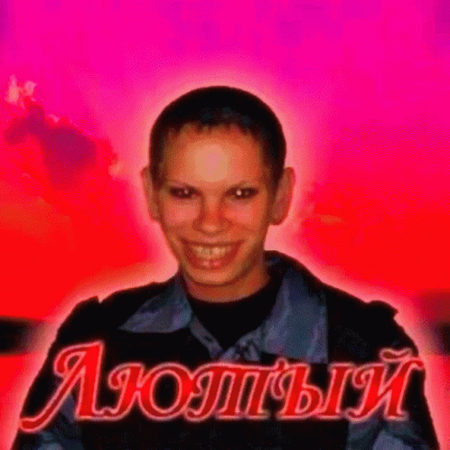 A person with a shaved head displays a fierce smile against a green background, with the Russian word 'ЯЮТЫЙ' (Fierce) displayed below.