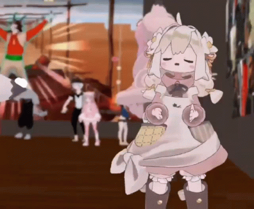 Animated characters dance energetically to Livin' La Vida Loca, with one character in the foreground.