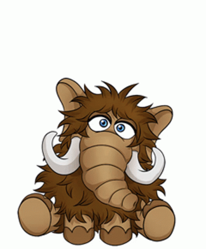 Living Puppets character Fletscher, a woolly mammoth, excitedly shouts 'Hurra' (Hurray) in a joyful animation.