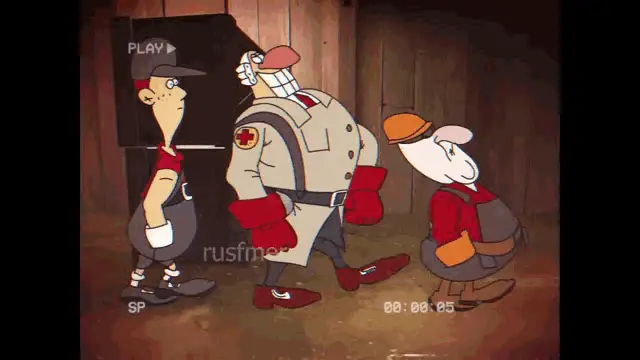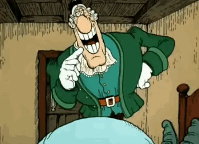Doctor Livesey from Treasure Island animation opens a door, bows, and then appears in a recursive visual effect.