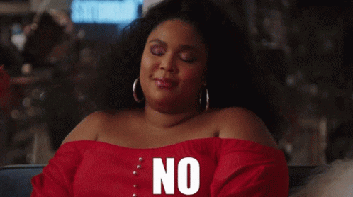 Lizzo emphatically says "NO" while wearing a stylish red off-the-shoulder top.