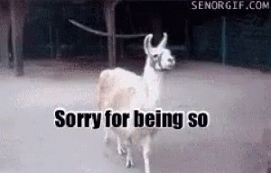 A white llama dramatically turns its head, accompanied by the text 'Sorry for being so FABULOUS'.