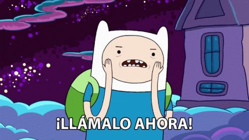 Finn from Adventure Time urgently exclaims '¡LLÁMALO AHORA!' (Call him/it now) with a distressed look.