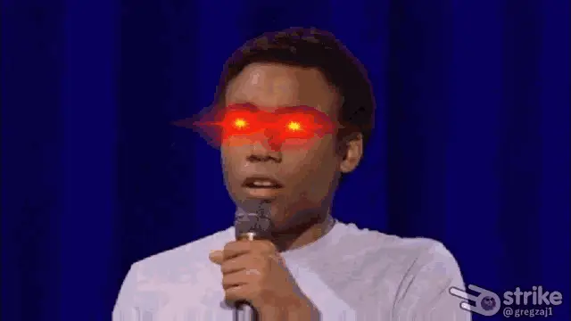 Joey Tribbiani from Friends with glowing laser eyes, smiling mischievously on a couch.