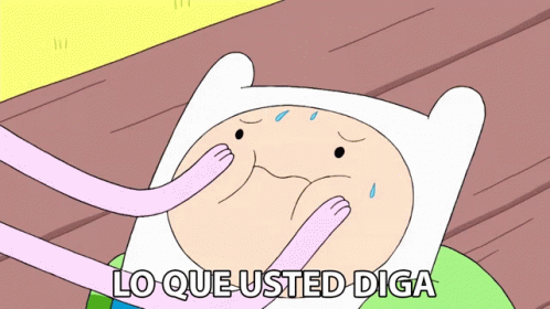 Finn from Adventure Time looks nervous and sweaty while saying 'Whatever you say' as his cheeks are squeezed.