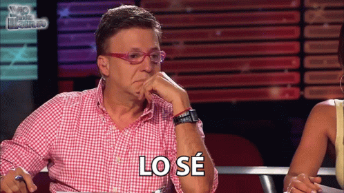 Jairo Martinez, a judge on Yo Me Llamo, says "Lo Sé" (I know) with a thoughtful expression.